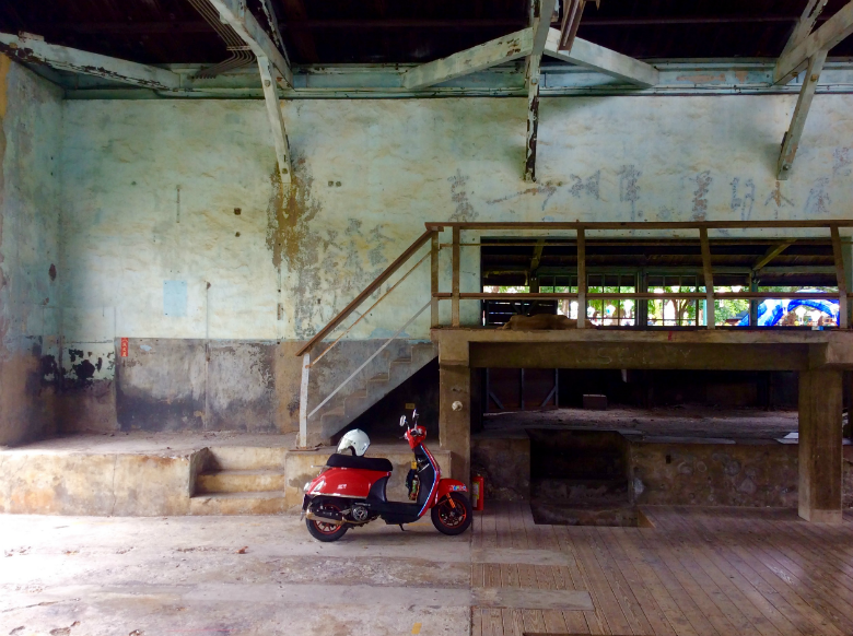 The tracks continue, untouched, north out of the city proper; a boardwalk runs the whole length as far as we explored, behind rows of houses, walking alongside locals travelling to and from work and school, cafes and eateries on our left and right, little seating areas here and there, colourful murals and fun sculptures dotting the route. After a long walk through this sleepy scenery we found our way to the old Taitung Sugar Refinery (台東糖廠). Some signs told us that it was also at one point a pineapple processing plant. It looms up on your right behind a row of trees just after old Ma Lan train station (馬蘭車站), another defunct, still-standing station which used to service this area of town.